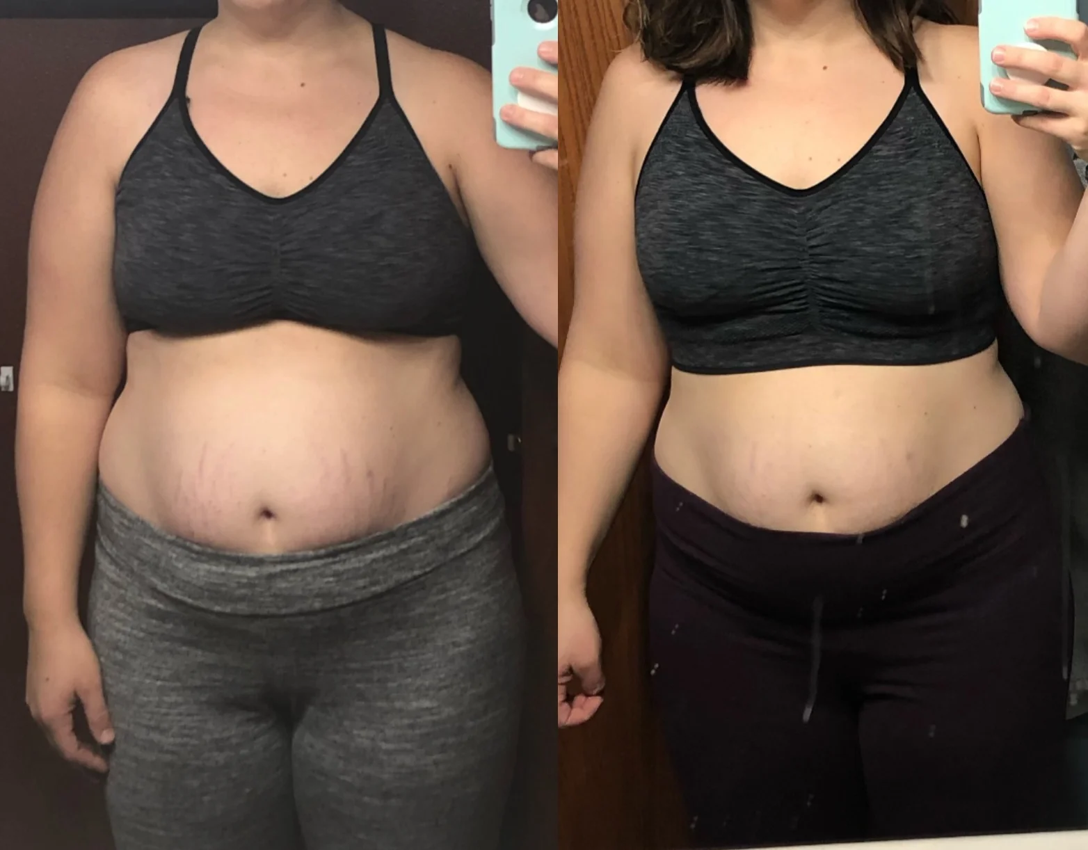 “I signed up for these challenges because I was not happy with the way my body looked. I was embarrassed to wear form fitting clothes, having gotten a couple of comments from people thinking I looked pregnant. I am so glad I started these challenges. I have seen results with my abs, legs, and arms.”
